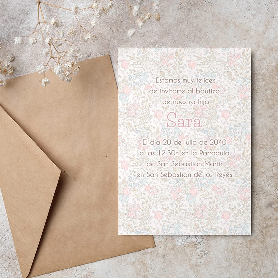 Las invitaciones están impresas en formato tarjetón a doble cara, en papel mate de 300 gramos, de alta calidad y acabado delicado. Incluyen sobrecraft, listo para entregar a tus invitados.