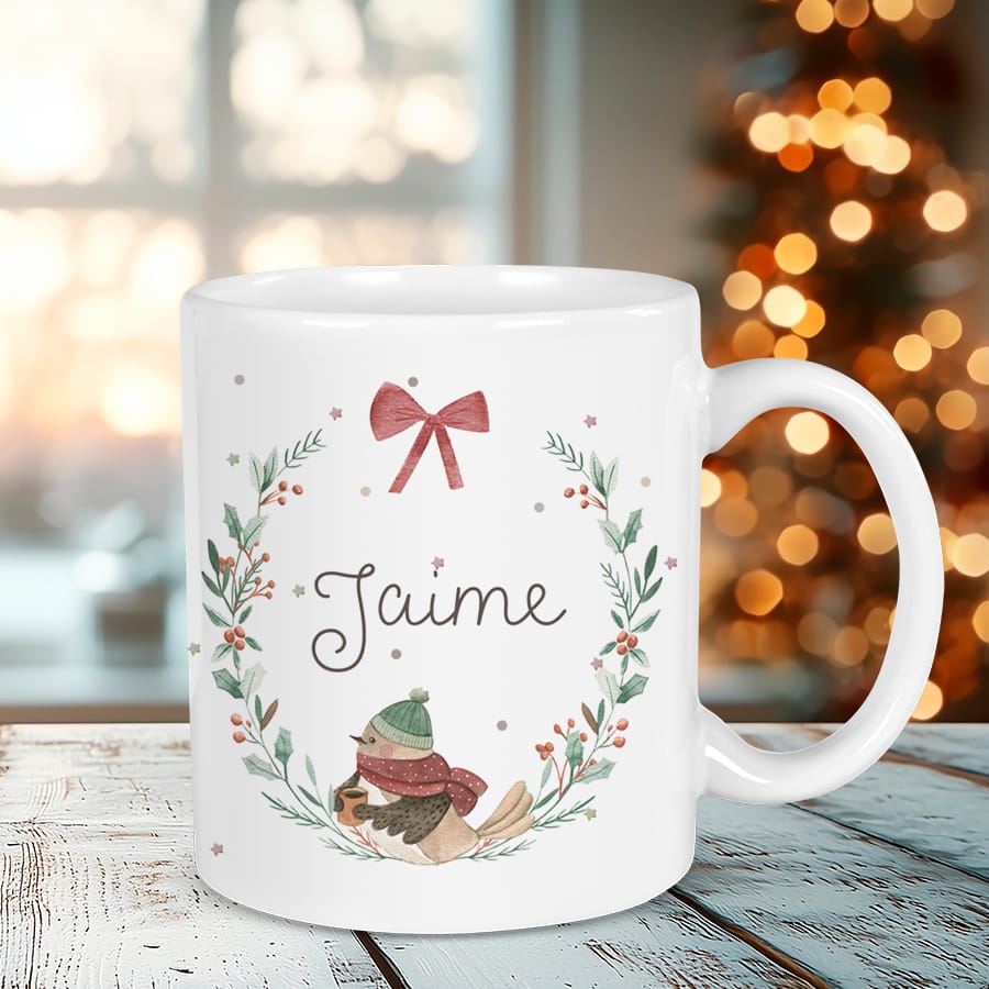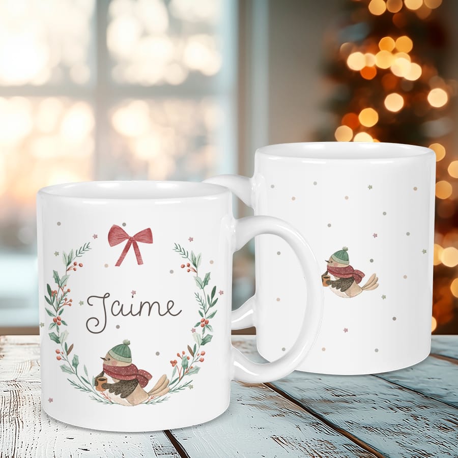 Taza navideña personalizada Pajarito Navidad