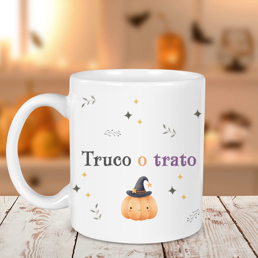 Una taza divertida y mágica para Halloween. Personalízala con tu nombre o el de tu peque y convierte cada desayuno en un momento terroríficamente especial.